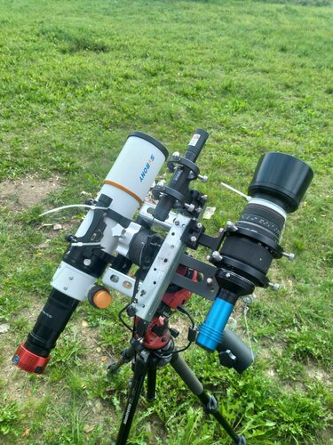 Комплект имеющегося оборудования - бинокли 10х50 и 20х80, телескоп ньютон 250мм, монтировки NEQ6 и Star Adventurer, астрокамеры, компьютеры, полно-апертурный солнечный фильтр, узкополосные и LRGB фильтры, корректоры комы и атмосферной дисперсии, окуляры, фокальные экстендеры и др.